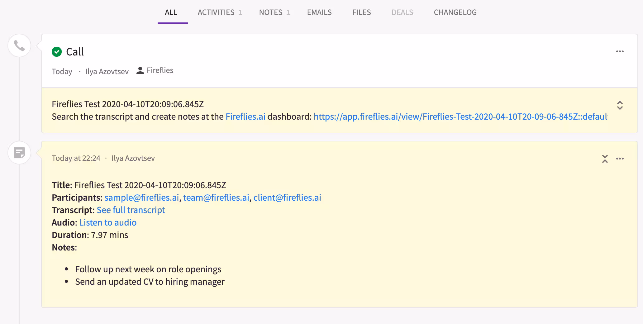 Every time you have a call or demo, FireFiles will connect to it, analyze the context, and make simple notes directly in Pipedrive.