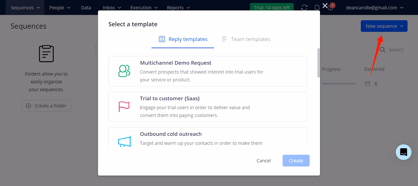 When you hover around sequences, you get a dropdown of three options: Sequences, Templates, and Outbox.