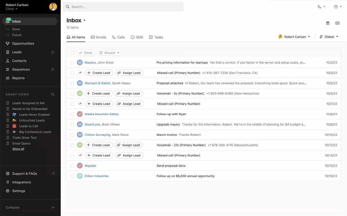 The primary mission of a CRM tool is to eliminate manual sales work, increase your efficiency, and move your leads through the sales pipeline.