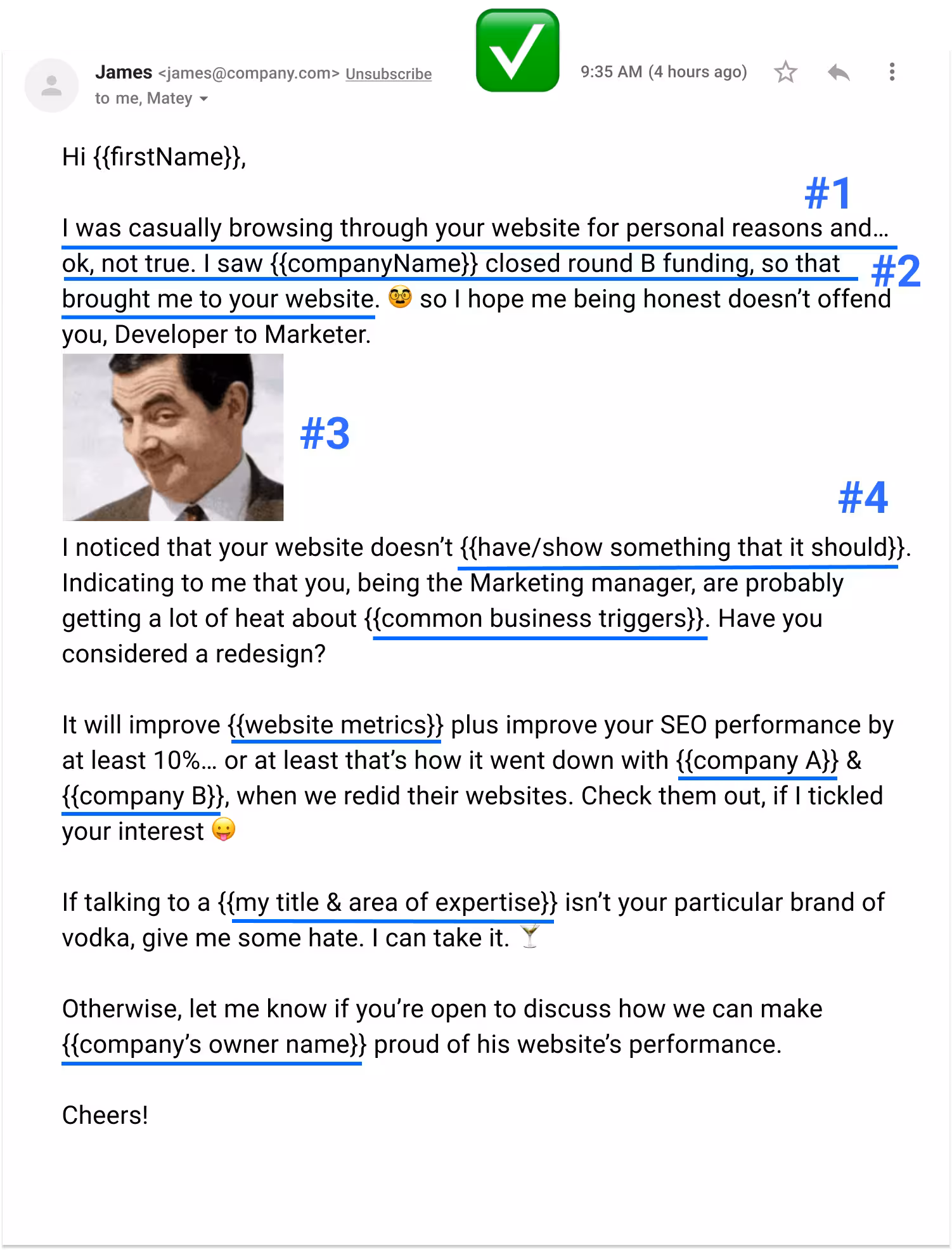 Use custom variables to make your email look like it was written especially for your prospects, and not sent in bulk.