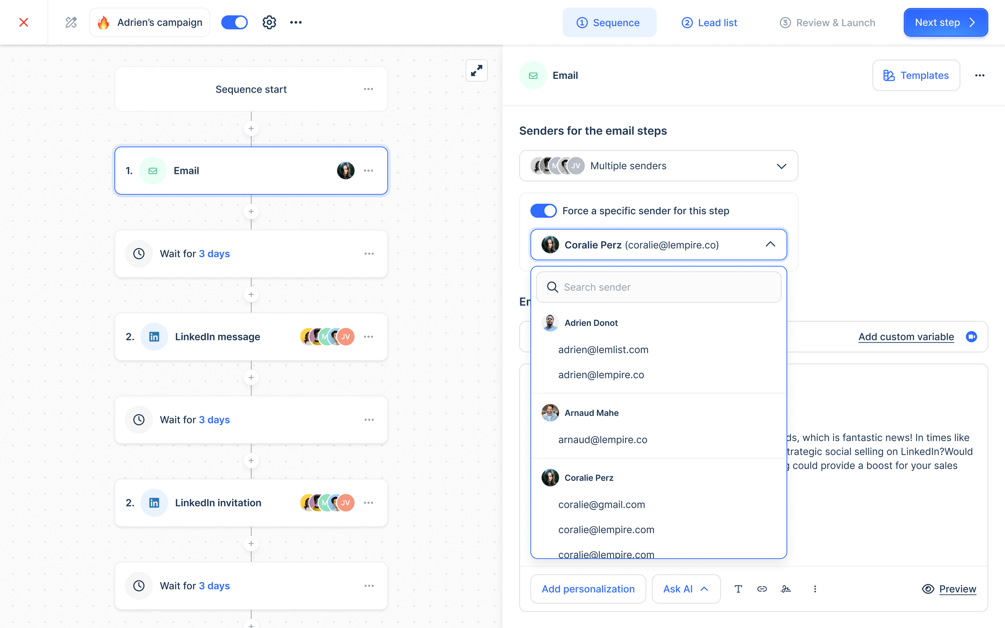 And this was just the email step, but I also added multichannel steps like LinkedIN profile visits and a DM.