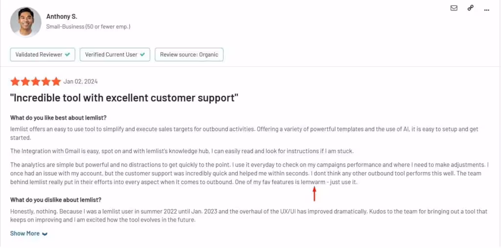 Praised for its personalized warmup emails and network tailored to the user’s industry, lemwarm is lemlist’s deliverability booster.