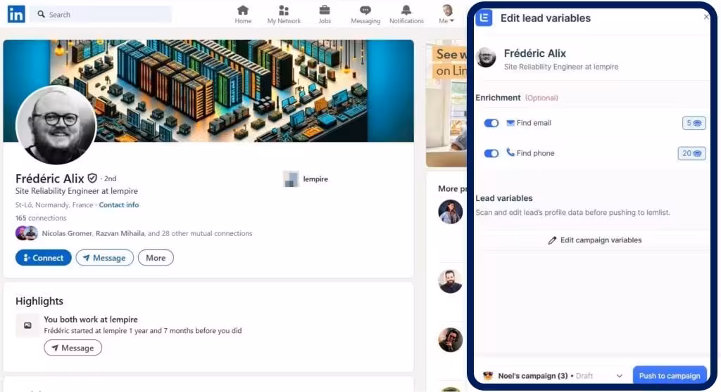- You found a lead that fits your ICP perfectly, for example: “Charles Tenot,” CEO at lemlist.