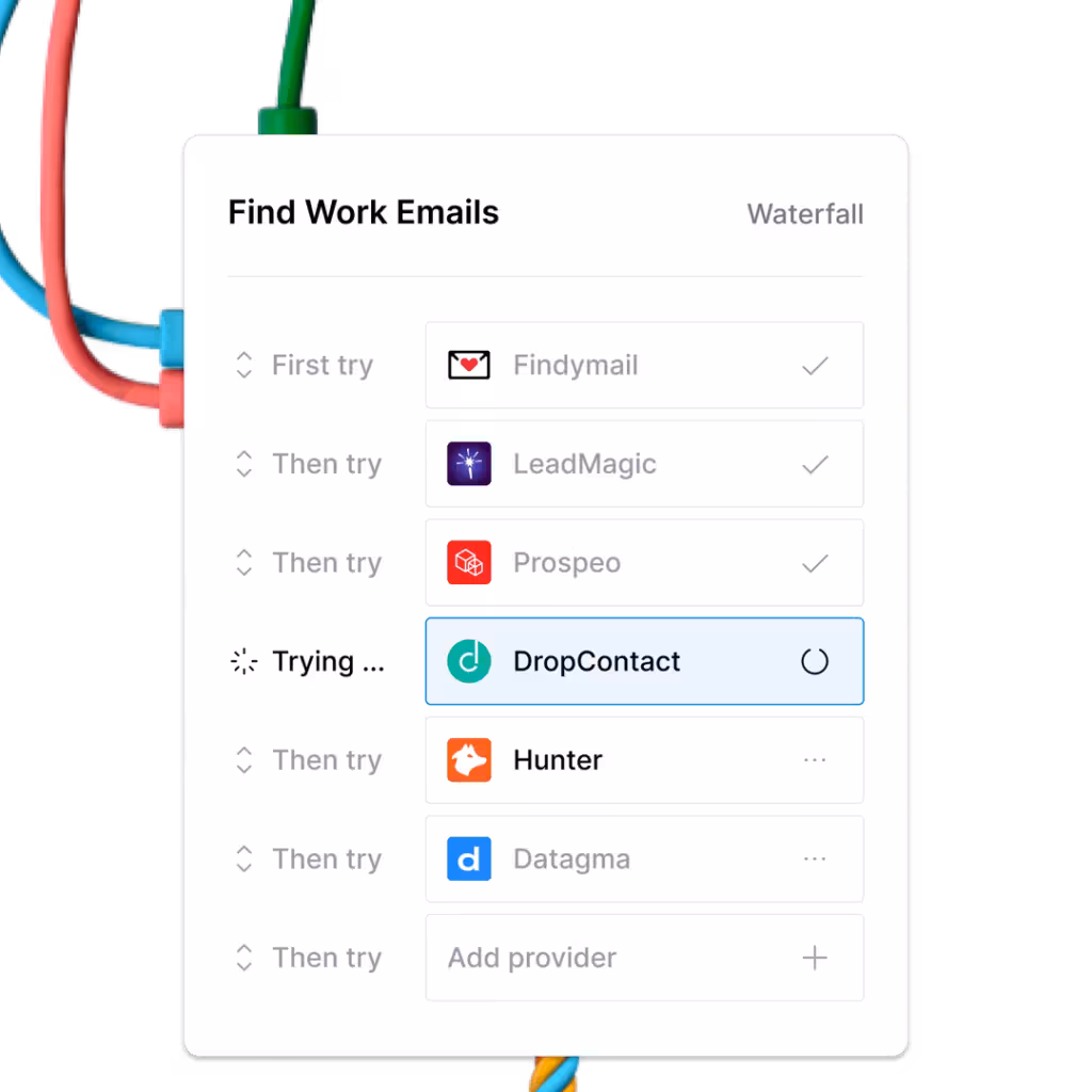 Once you have an initial list of leads, you can run it through an automated waterfall enrichment process.