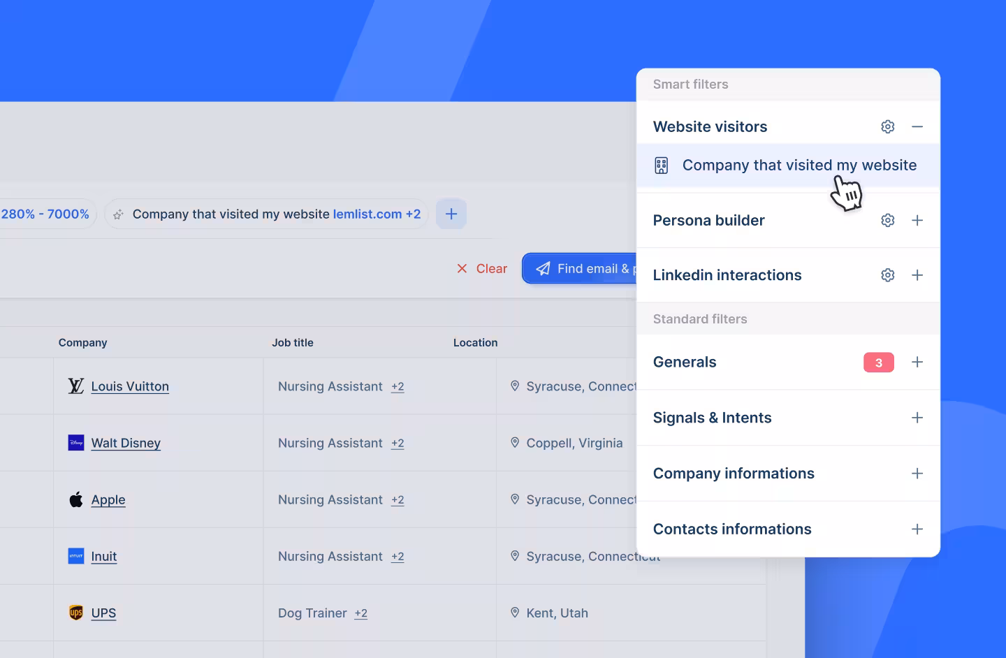 - Find people and companies with lemlist’s database