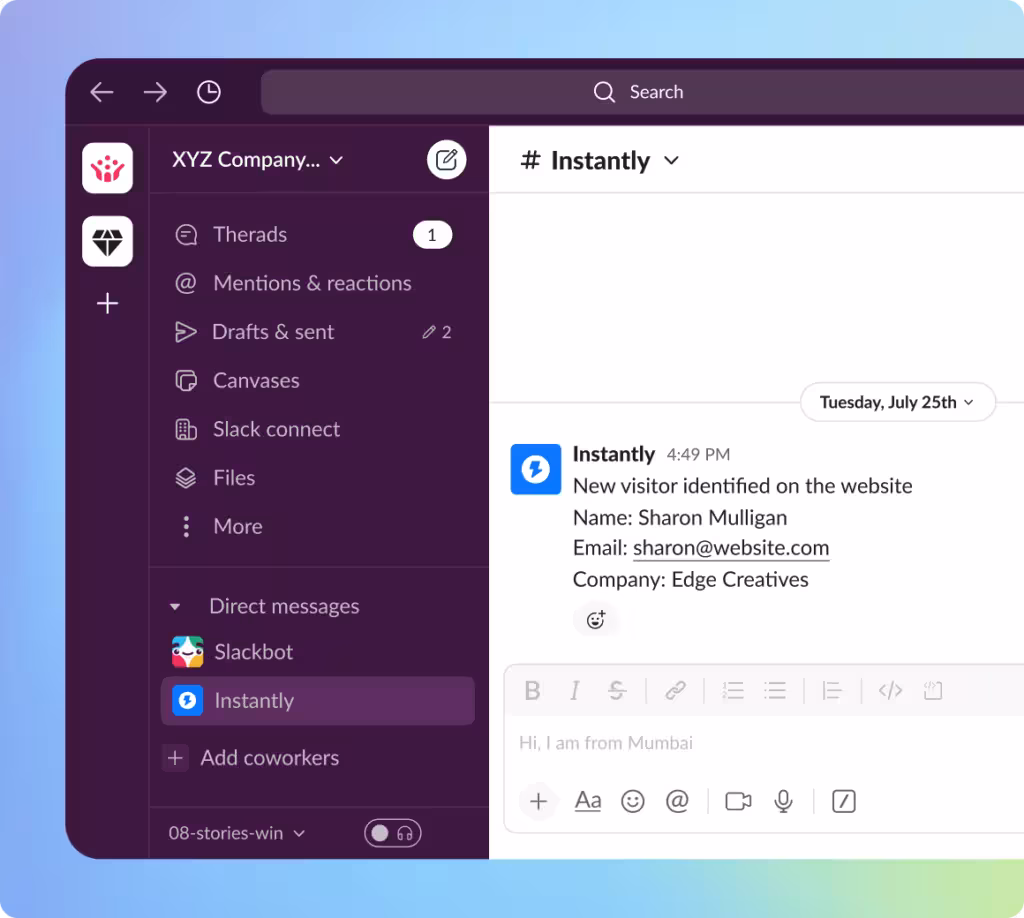 Once you’ve tracked down your website visitors, you can also push them to a Slack channel to make communication with your leads much easier.