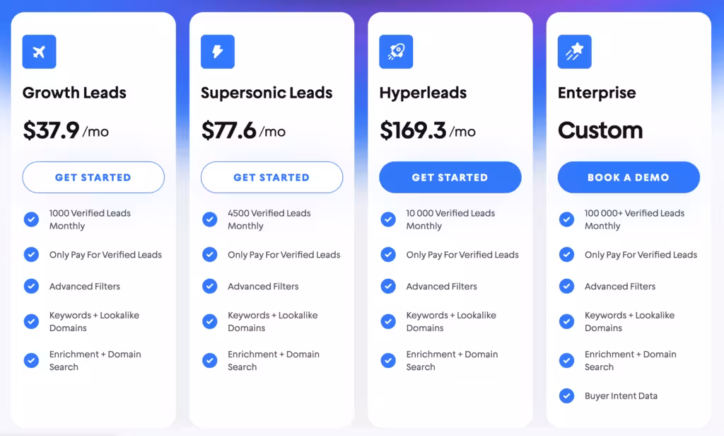 Apollo offers 4 pricing plans. Including a free plan which will give you access to the database but only with basic filters and you can only include 1 buying intent filter.
