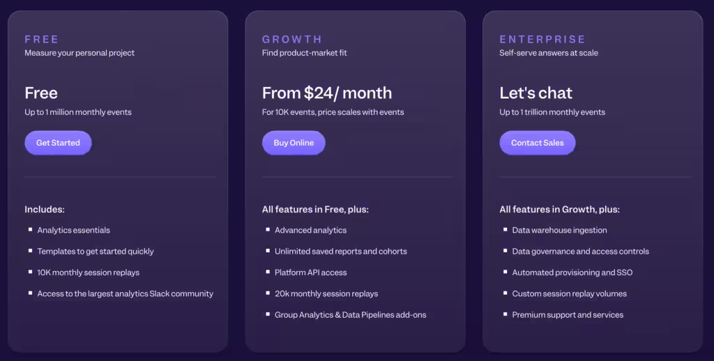 Mixpanel offers 3 pricing plans.