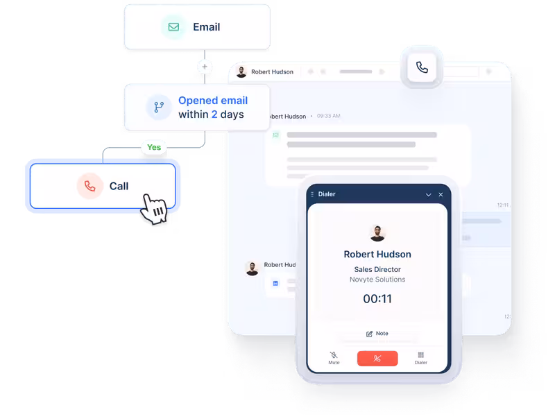 Turn your text-based outreach into real conversations by adding call steps. Set engagement-triggered reminders and call leads when they already know you.