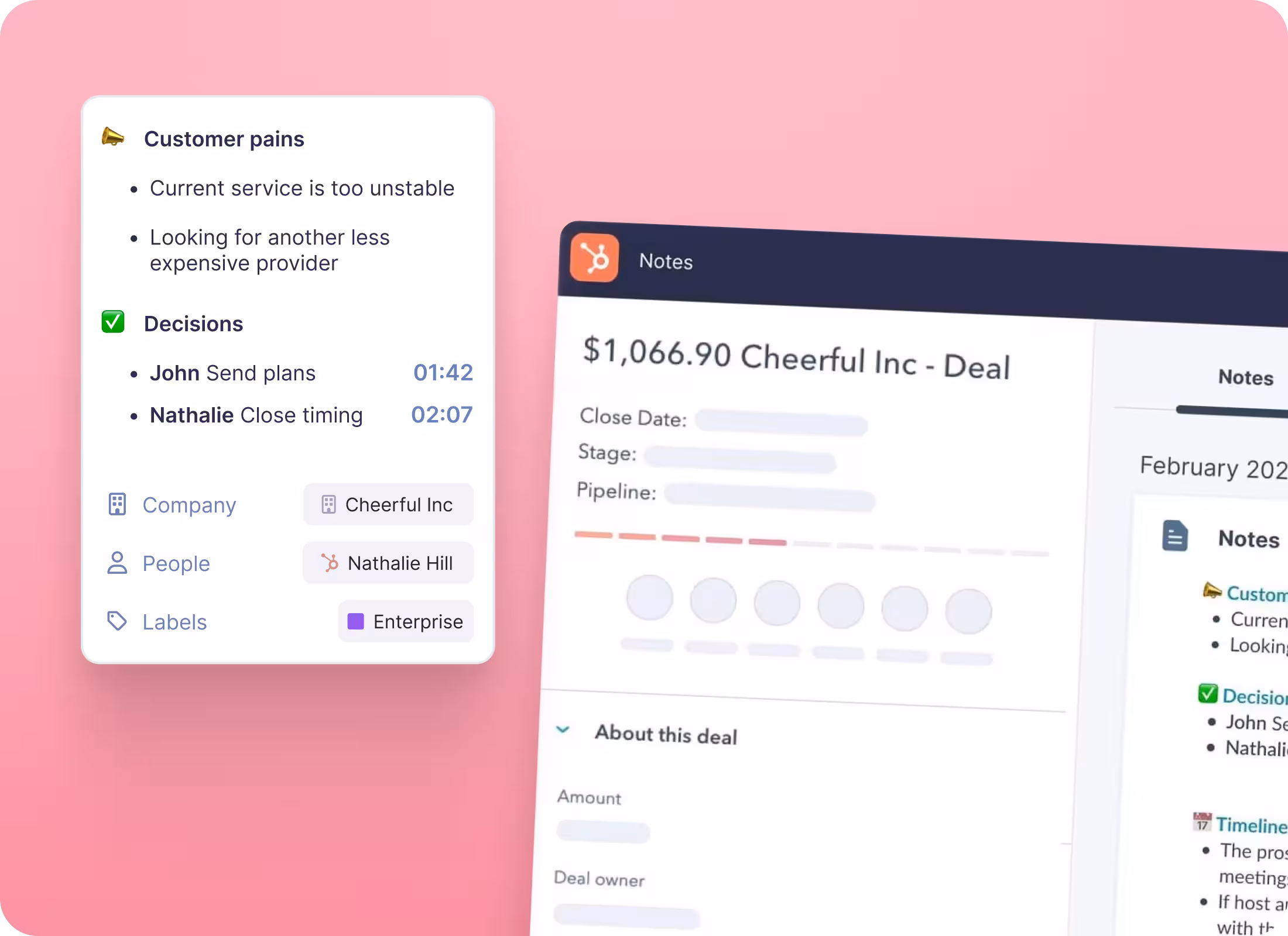 Call notes, tasks and deal info are synced directly into your CRM, keeping your pipeline accurate and clean. No reps typing or ops chasing!