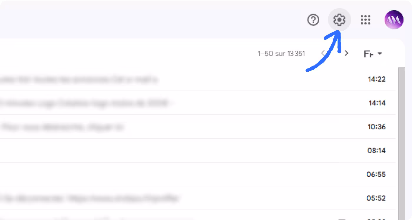 Log in to your Gmail account and click the gear icon in the top right corner.