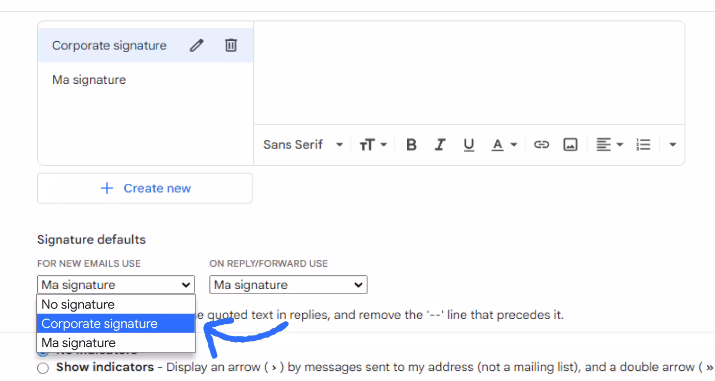 If you want your signature to appear only on certain types of messages (such as new messages or replies/forwards), navigate under “Signature defaults” and make your selection.