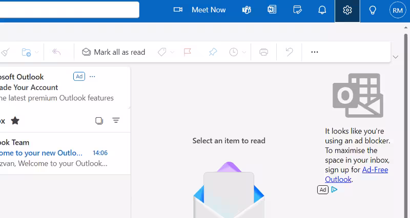 Log in to your Outlook account and click on the gear icon in the top right corner.
