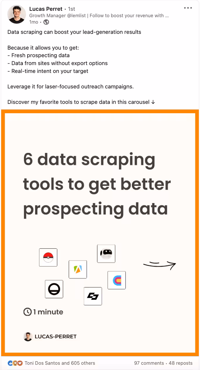 See how Lucas did this by sharing useful information in the LinkedIn carousel format: