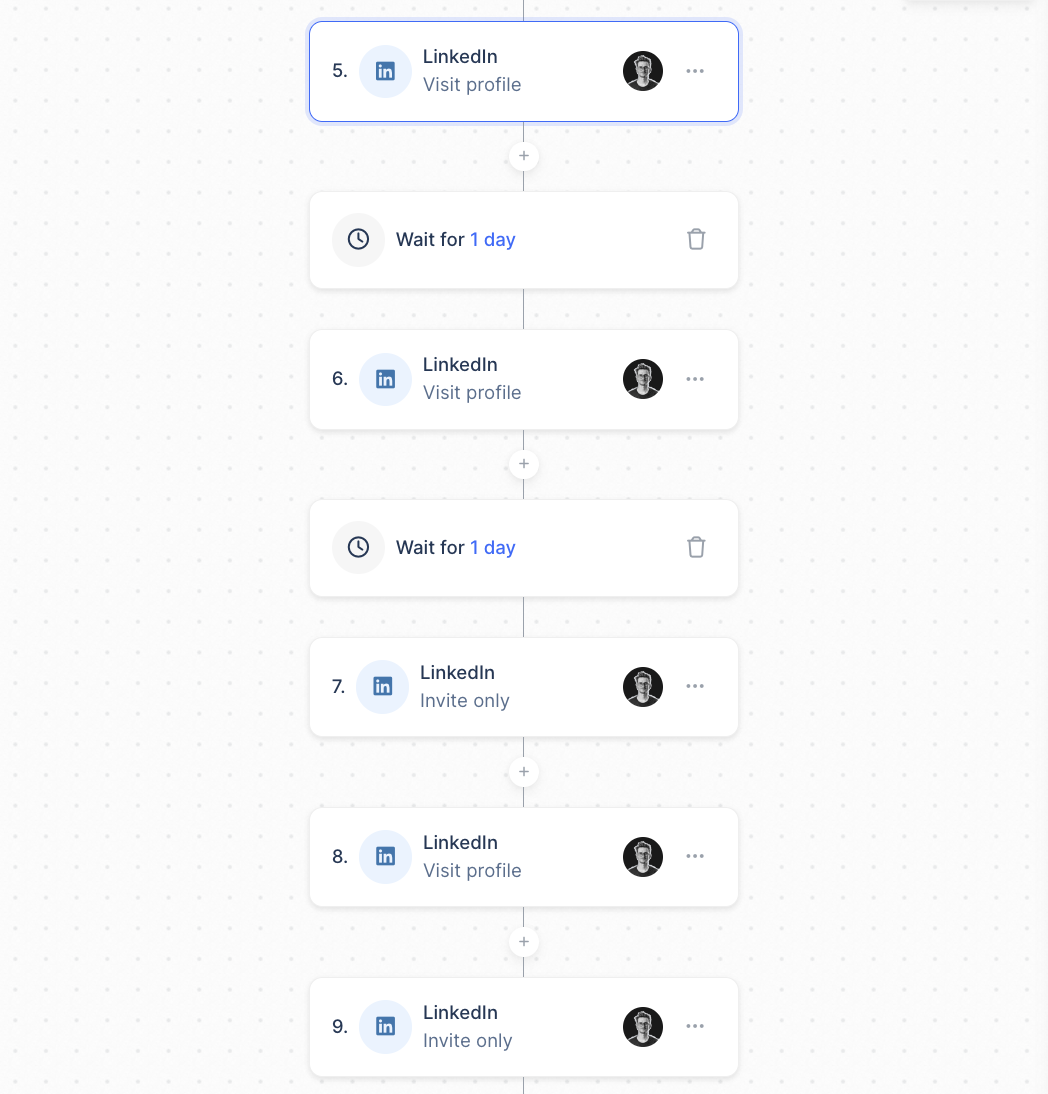 Esto aumenta las posibilidades de que tus clientes potenciales vean tu marca. Si tus clientes potenciales aceptan alguna de tus múltiples solicitudes de LinkedIn, empezarán a ver tus publicaciones, lo que aumentará la credibilidad personal y empresarial, y la probabilidad de que respondan a tu secuencia de divulgación en frío.