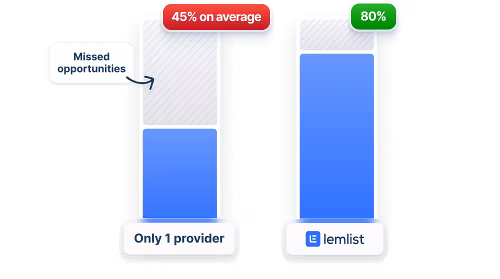 If the first provider can't find an email, lemlist automatically searches through the next one. This method secures 80% of your leads' emails—up to 2x more than average vendors.