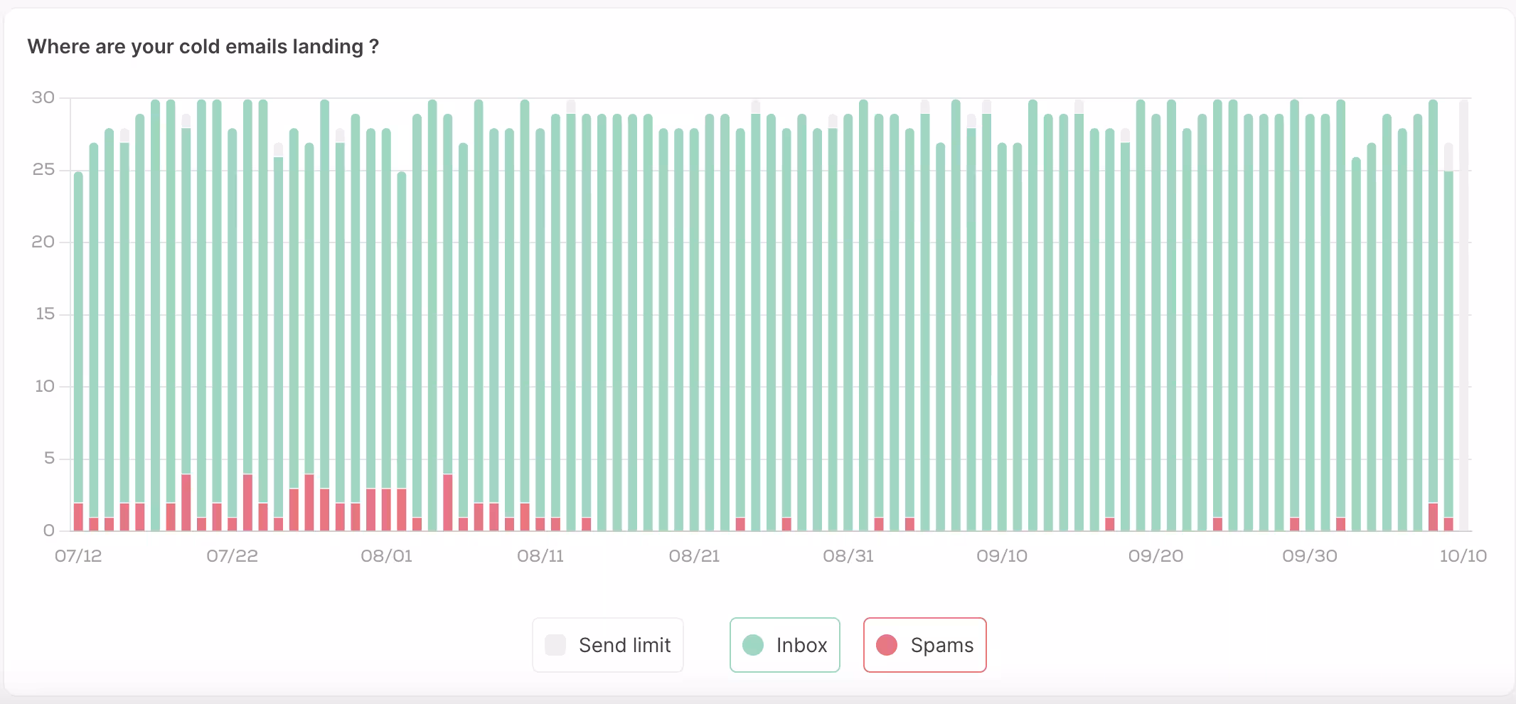 - Distribute volume across multiple inboxes, maximum 10 emails / day / inbox