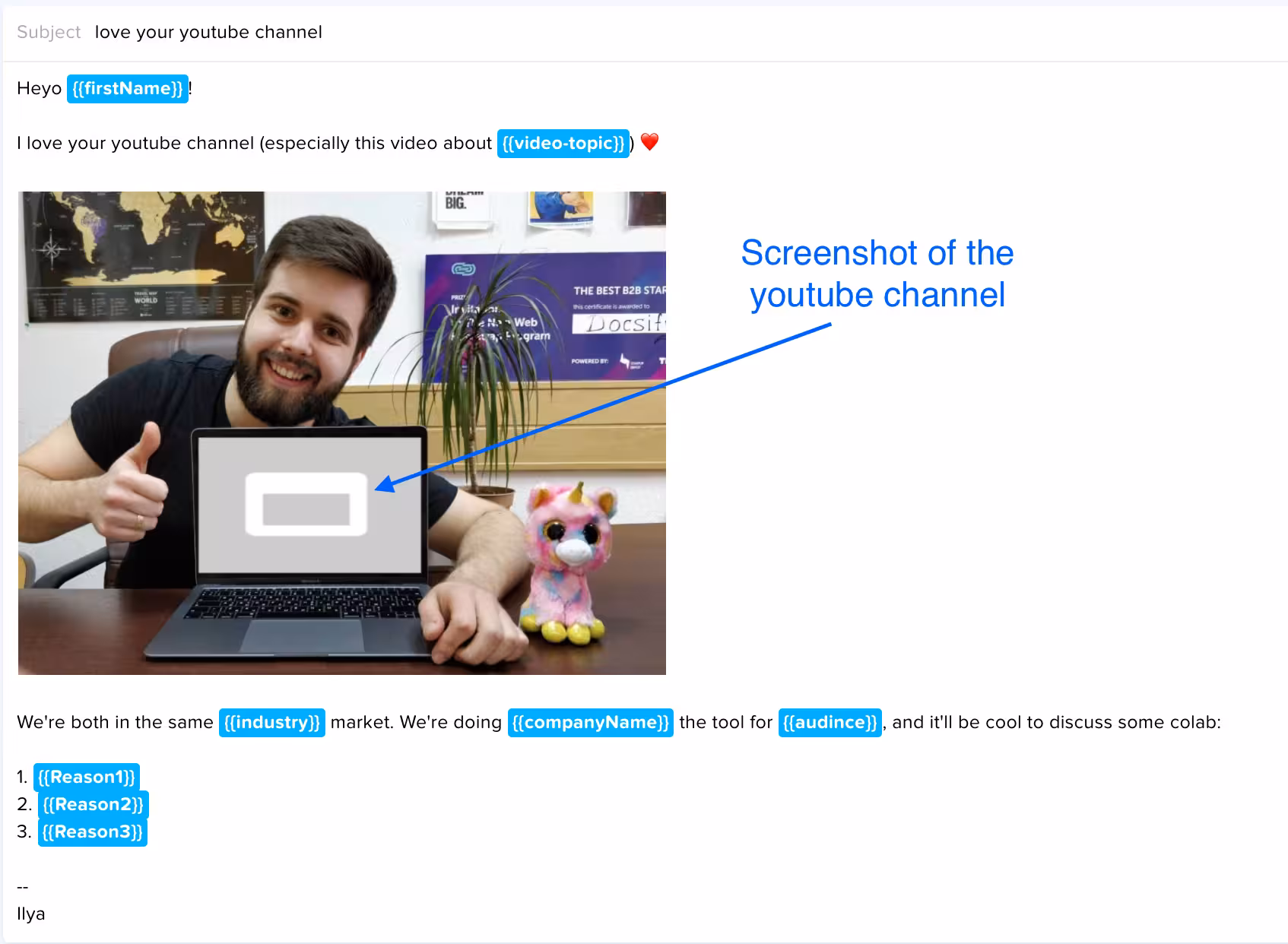 This is the template that a lot of founders can use to promote their software though different influencers, but also to get on their podcast or show.