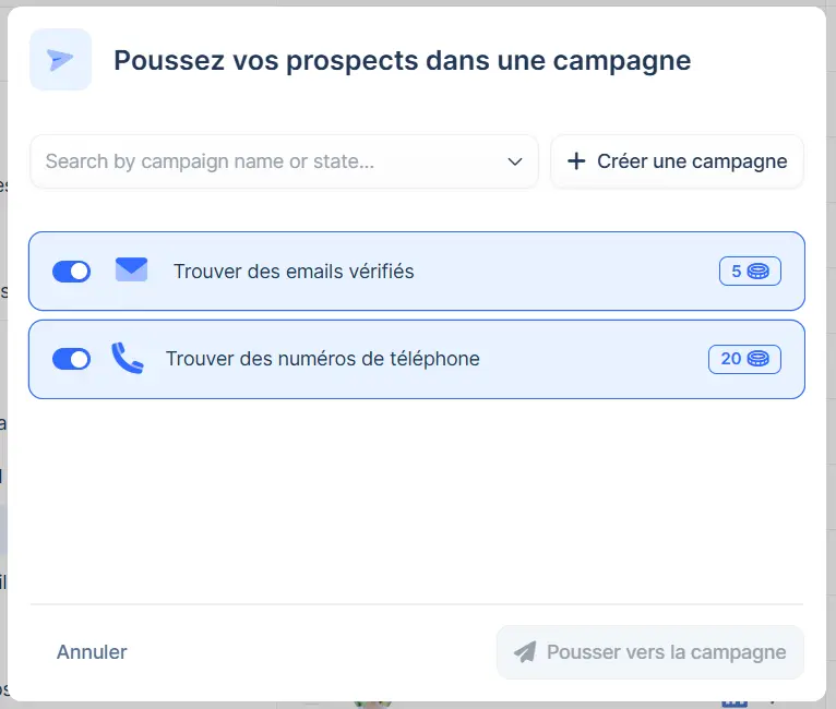 Il n’est pas nécessaire de rechercher manuellement les numéros de téléphone ; vous pouvez les trouver directement à partir du même outil de prospection.
