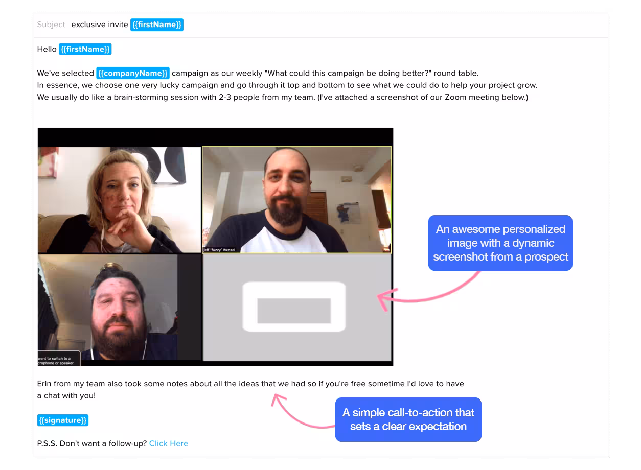 Here is an example of a cold email with personalized images: