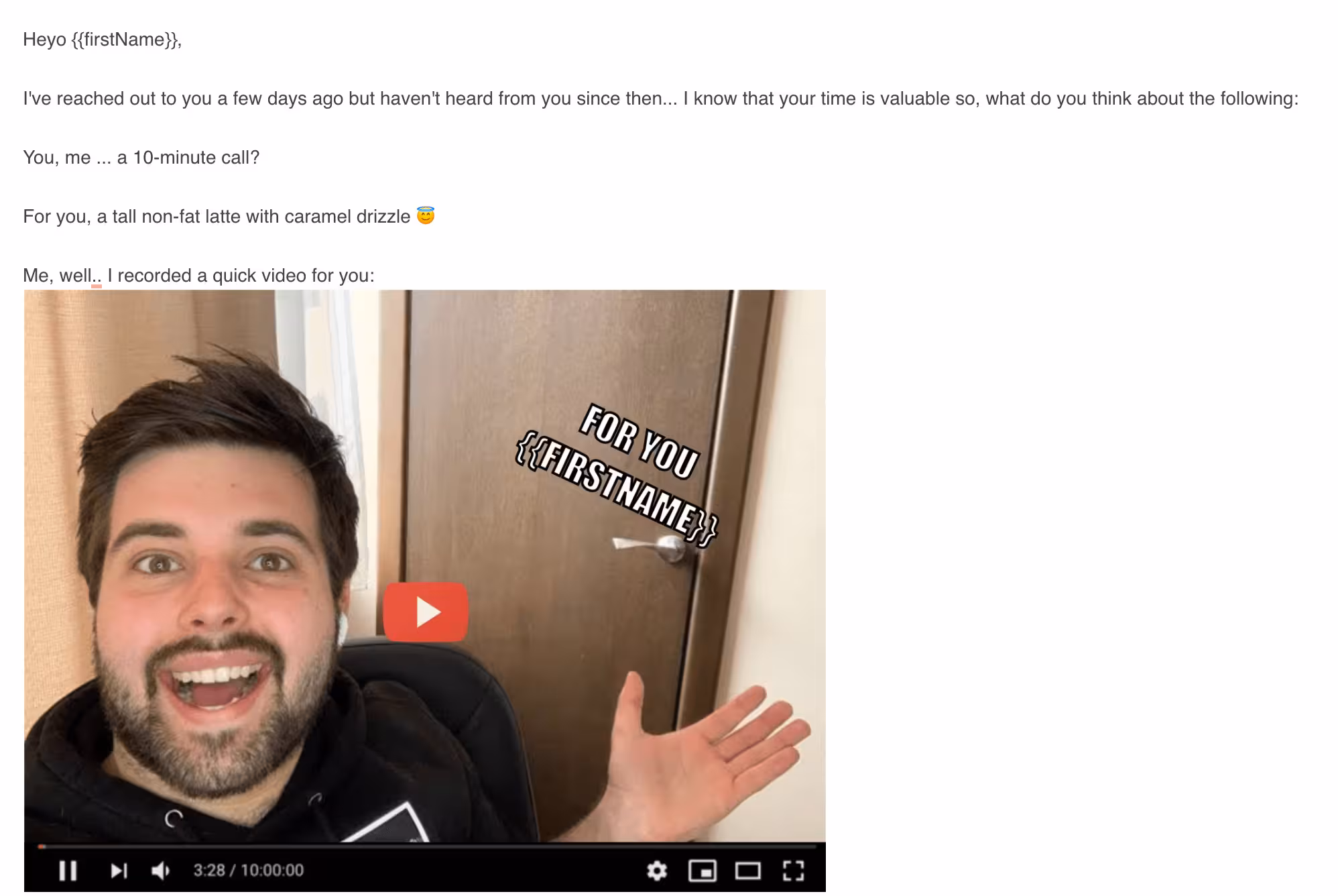 So, my email looked like this: