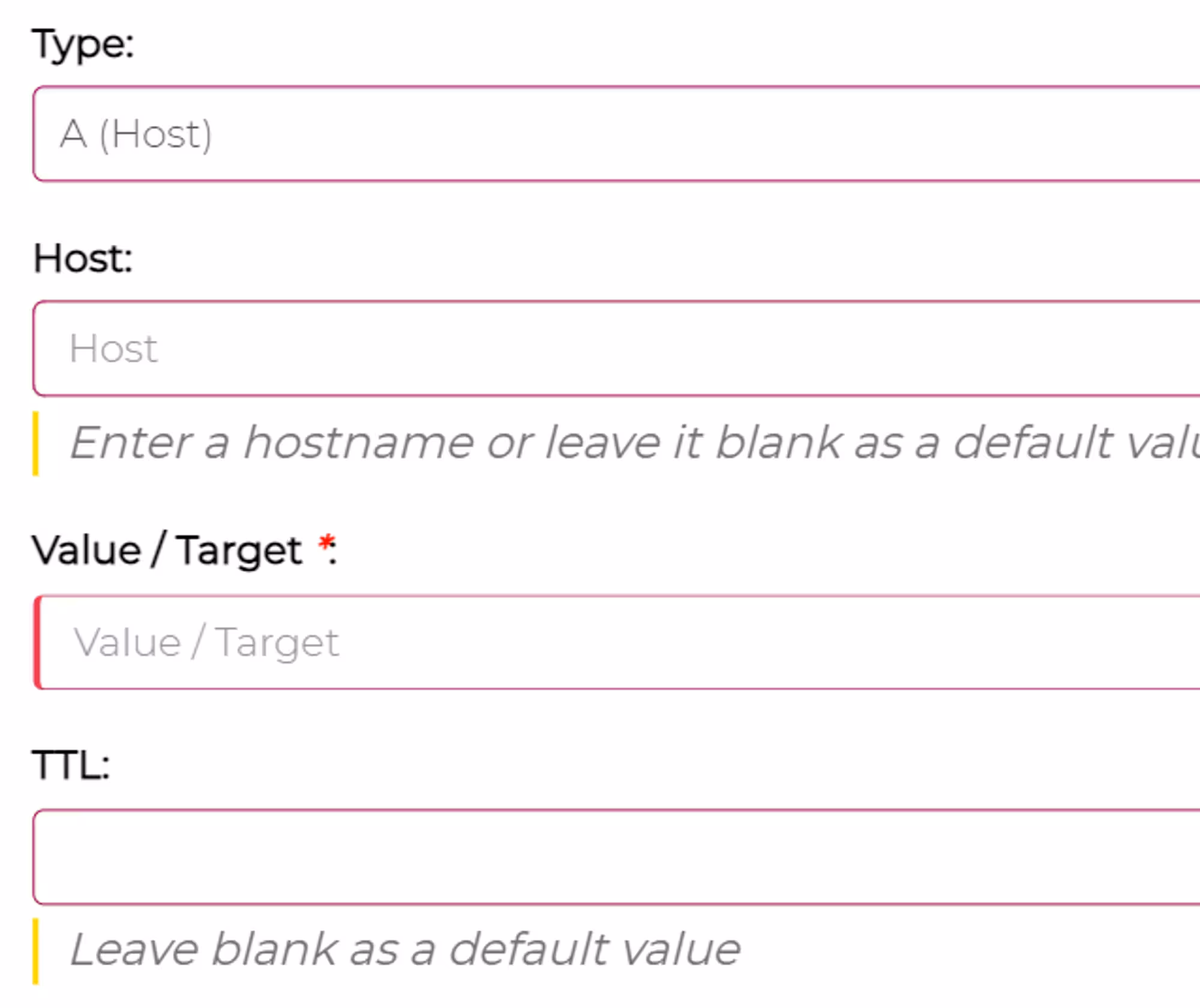 Click on “add” or “add new record.” You should see a form like the one below: