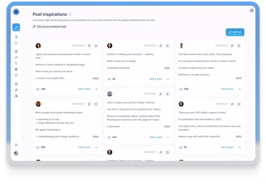 Taplio offers the whole package – viral post inspiration, post scheduling, analytics for growth, AI-powered content creation, and more.