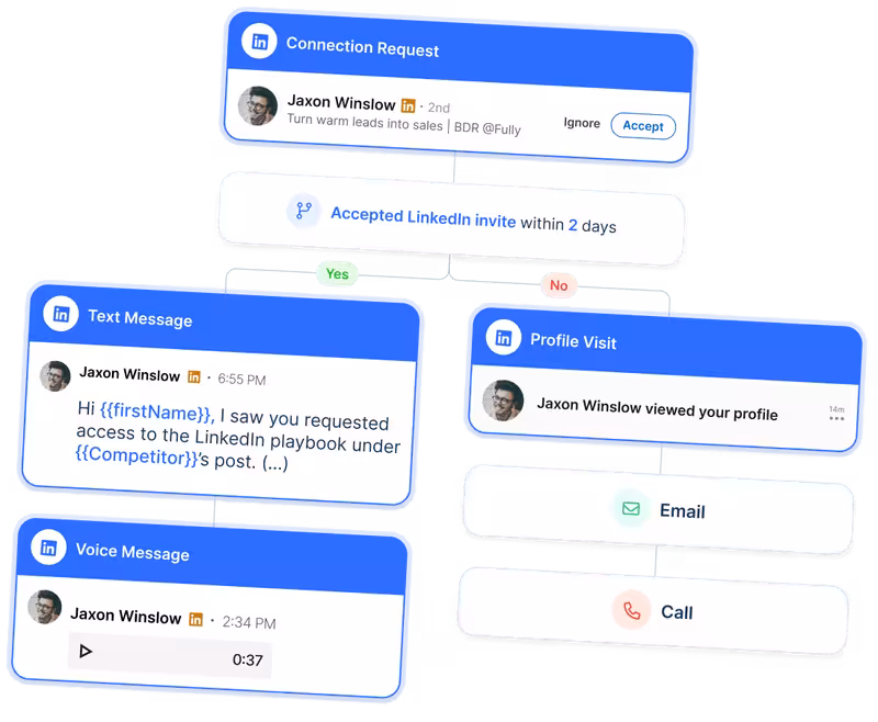 Send custom connection requests on autopilot, keep building trust through feed engagement, and gain credibility as a thought leader.