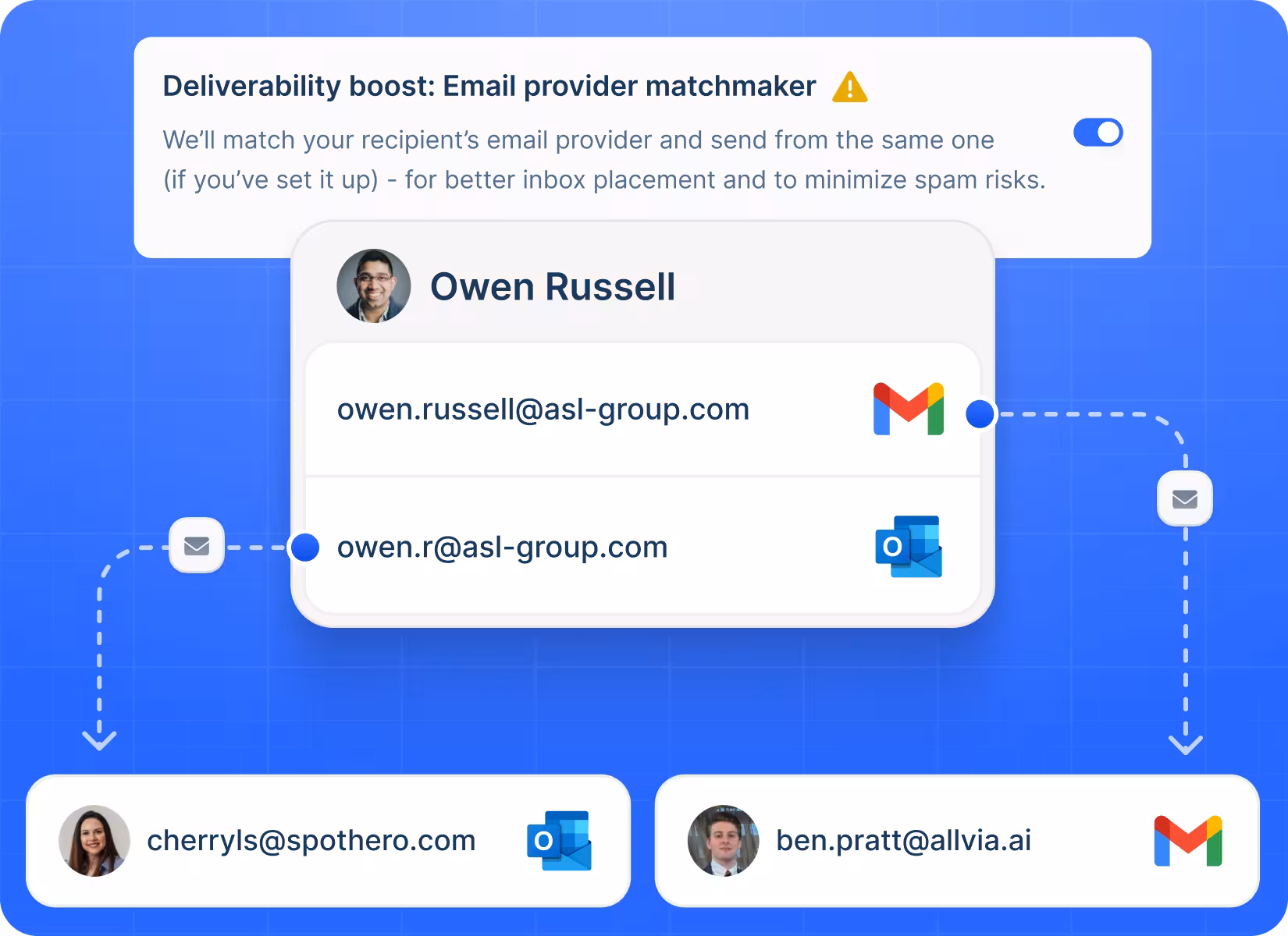 Land more reliably by matching your sender to your prospect's email provider, with zero configuration needed.