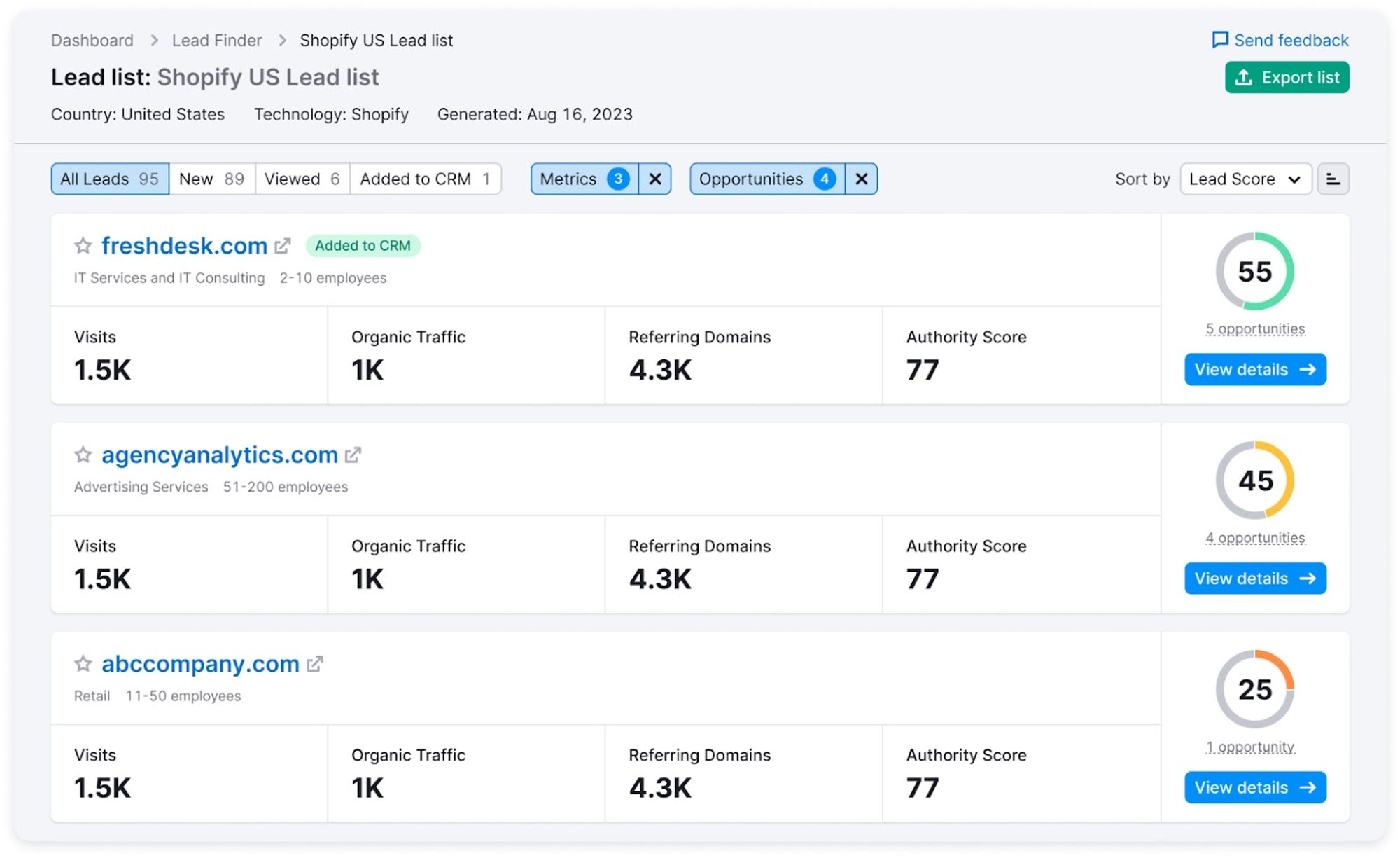 - Fornisce informazioni e dati dettagliati: I lead generator sono spesso dotati di una dashboard di analisi in cui puoi monitorare le prestazioni delle tue strategie di lead generation. Con queste metriche, puoi capire cosa funziona e cosa no e migliorarlo nel tempo.