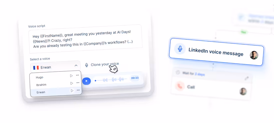 Stand out in inboxes by sending your voice - record once or let lemlist clone it and personalize each note at scale!