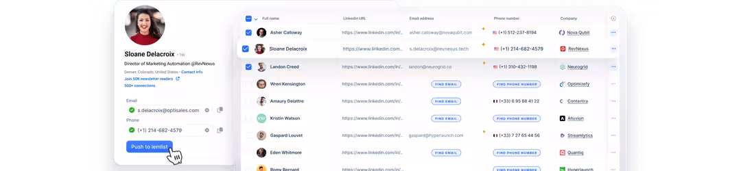 Find LinkedIn leads, push them to multichannel campaigns, and let automation handle the rest. Visits, invites, text or voice messages - all from 1 tool.