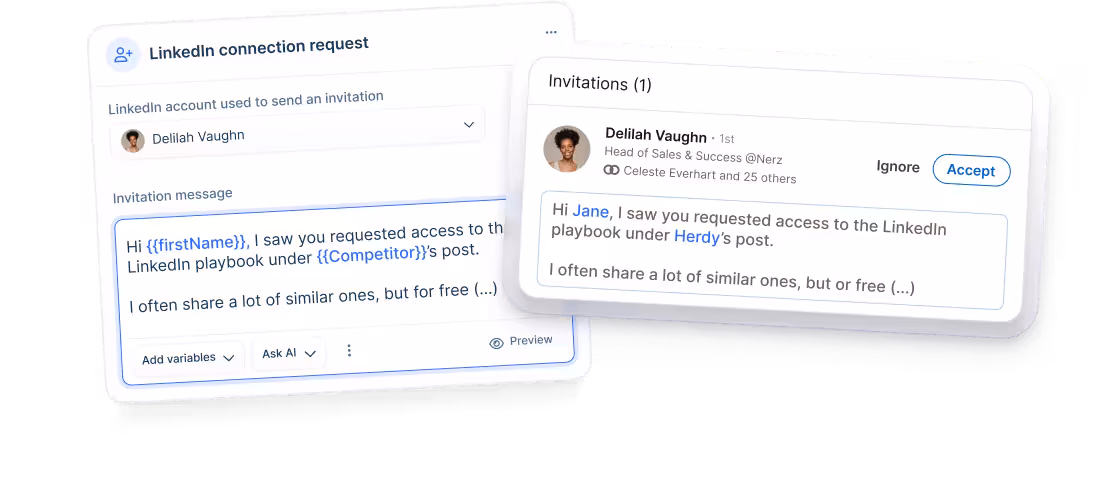 Send custom connection requests on autopilot, keep building trust through feed engagement, and gain credibility as a thought leader.
