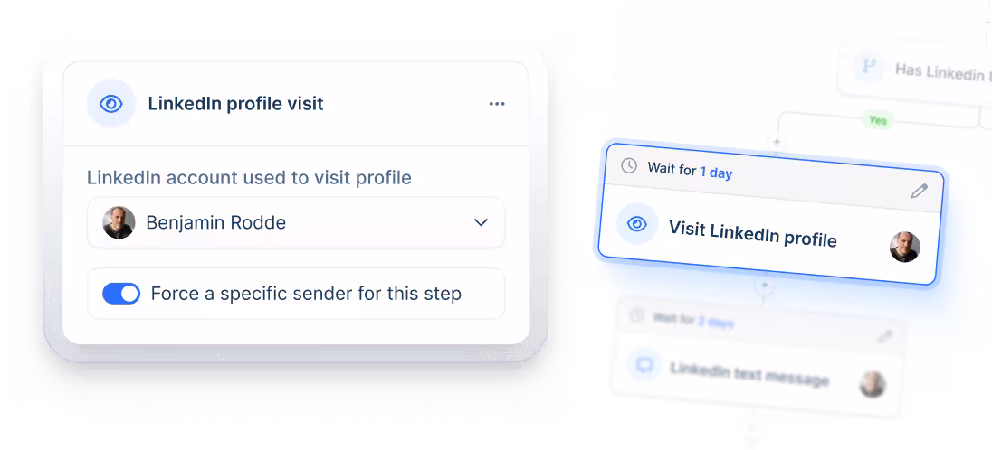 Automatically visit leads’ profiles to signal genuine interest, make yourself familiar, and increase chances of connecting later on.