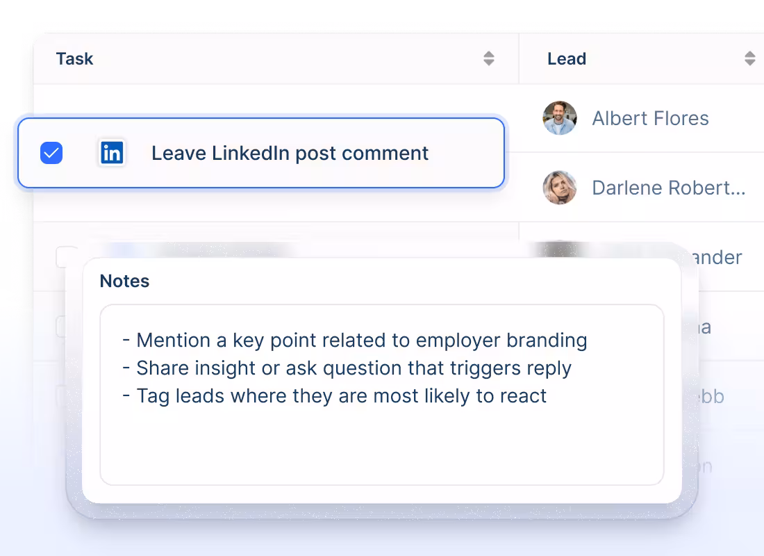 Not everything can be automated, like sharing a truly authentic comment on a lead’s LinkedIn post. Set automated reminders for manual actions to keep your outreach personal, well-rounded, and meaningful at every step.