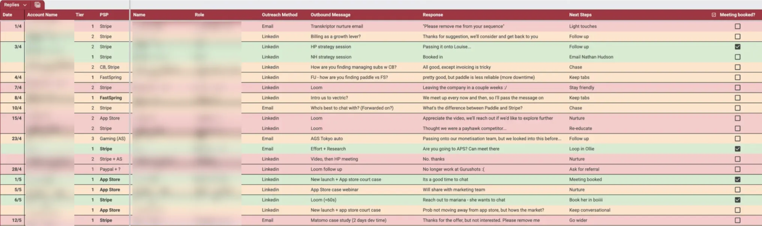 That’s where I’m tracking the emails, I’m sending the LinkedIn messages, what kind of messages, phone calls, when I get replies.