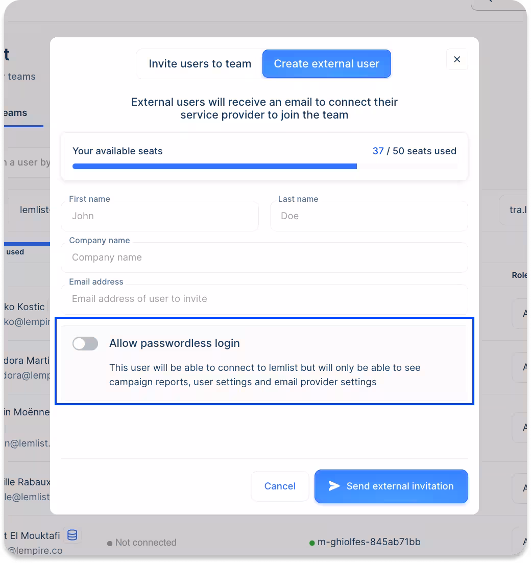 Plus, lemlist’s admin roles remain free if those users don't connect their email providers. This helps agencies like Hype save money while still having control over all clients’ accounts.