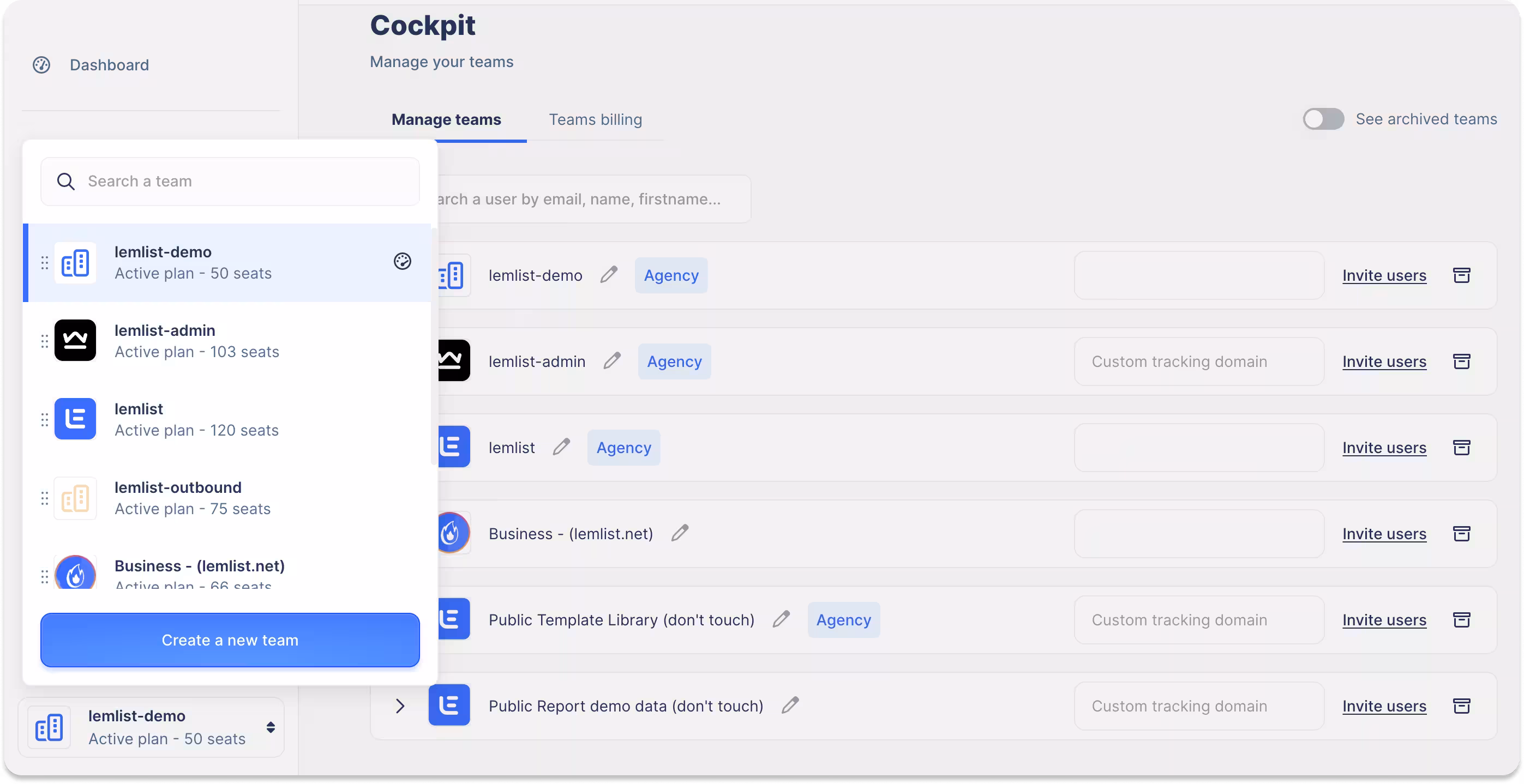 By managing and accessing each client account in lemlist’s interface, Boris doesn’t have to constantly log in and out. He can segment clients into teams and assign campaigns to each from one convenient spot.