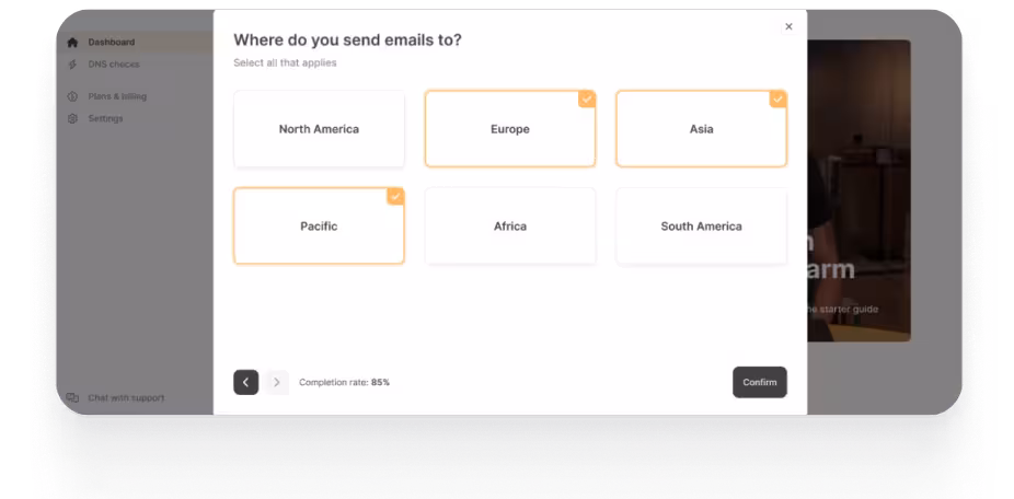 Sending 200+ daily emails per sender could hurt Bill’s domain, landing his clients’ emails in the spam folder where they can't reach the target audience.