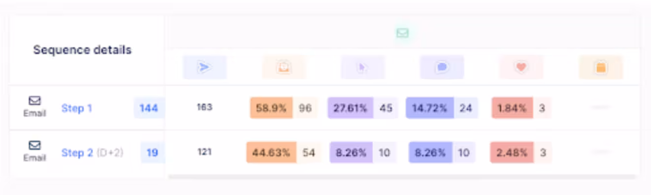 Aside from messages, lemlist users can add cold call steps, reminders to perform manual tasks (such as commenting on LinkedIn posts), or connect API to set up unique processes.