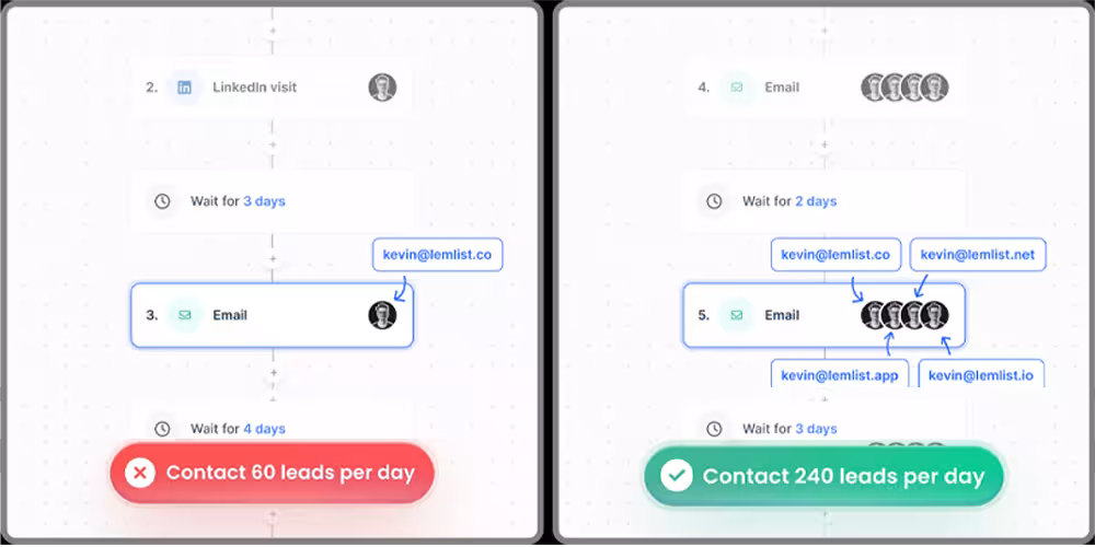 lemlist makes sure your emails get to your leads with inbox rotation. Combine multiple lemlist accounts as senders into 1 campaign and reach out to 2 to 4 times more leads without the risk of landing in spam.