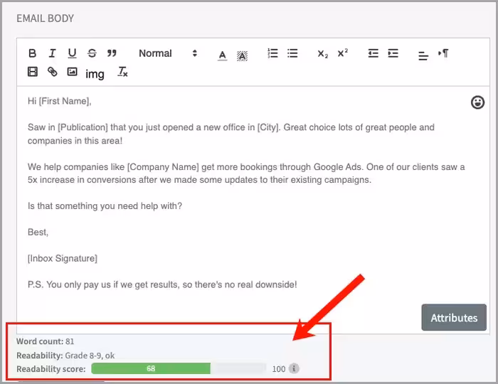 You’ll also get a readability score after crafting your email which can be very useful before sending!