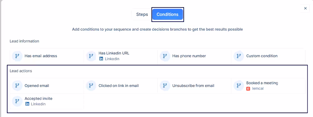 lemlist can simulate human-like activities at scale while with advanced conditions designed to engage with your recipients.