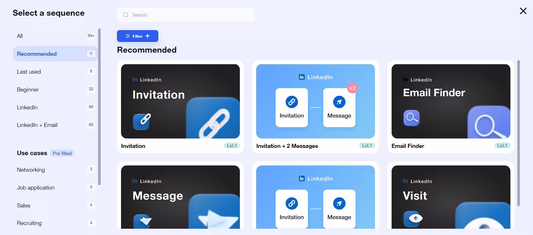 You can test Waalaxy’s LinkedIn-focused features through its free plan. However, the features are limited as you can only send 80 invitations per month, and you get 25 email finder credits.